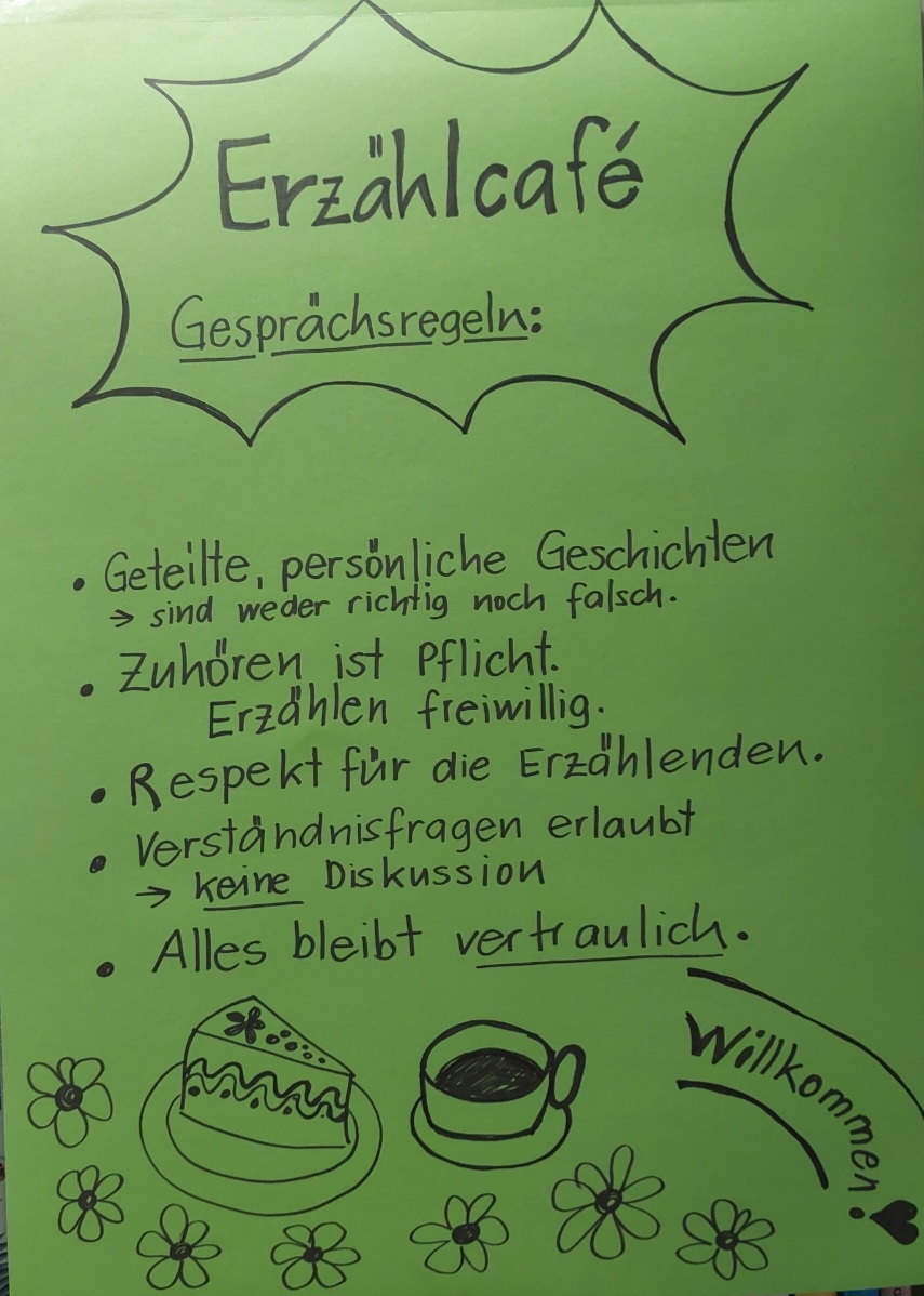 Im Erzählcafé teilen wir Lebenserfahrungen, hören einander zu und lernen voneinander. Es entstehen Momente des Glücks, der Überraschung, des Verstehens. Auch wer «nur» zuhören möchte, ist willkommen.